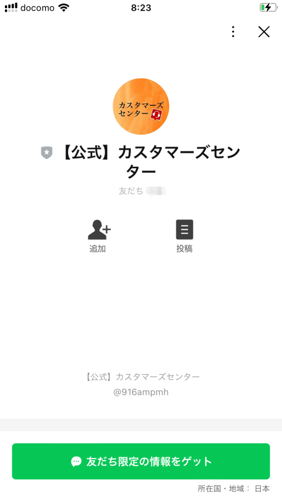 登録をすると「【公式】カスタマーズセンター」というLINEアカウントへの登録を促されます。