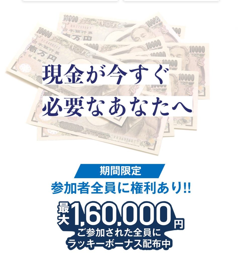また、「現金が今すぐ必要なあなたへ」「ボーナス配布中」など強めの訴求があります。