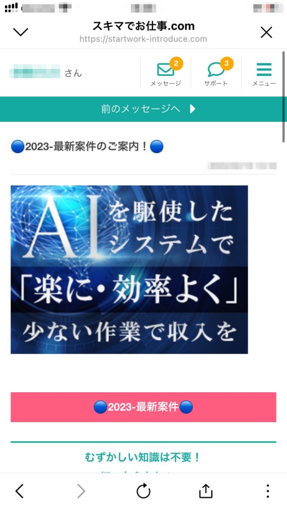 「マイページを確認」をタップすると、【ぽちお【ネットビジネス調査隊】と同様に「スキマでお仕事.com」の画面に遷移します。