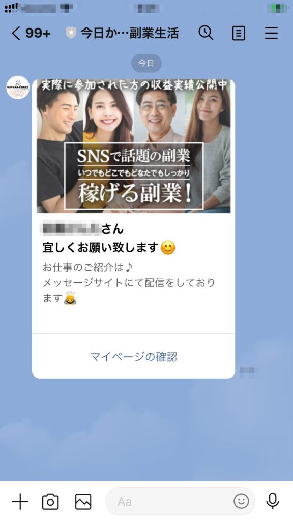 LINEアカウント「今日から始める副業生活」からの紹介