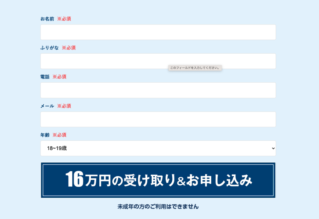 実際に以下の入力画面から名前や電話番号などを入力して登録をしてみました。